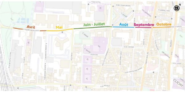 De mi-avril à début mai : travaux entre la rue Petit et la rue Jeanne d'Asnières (voir la déviation)